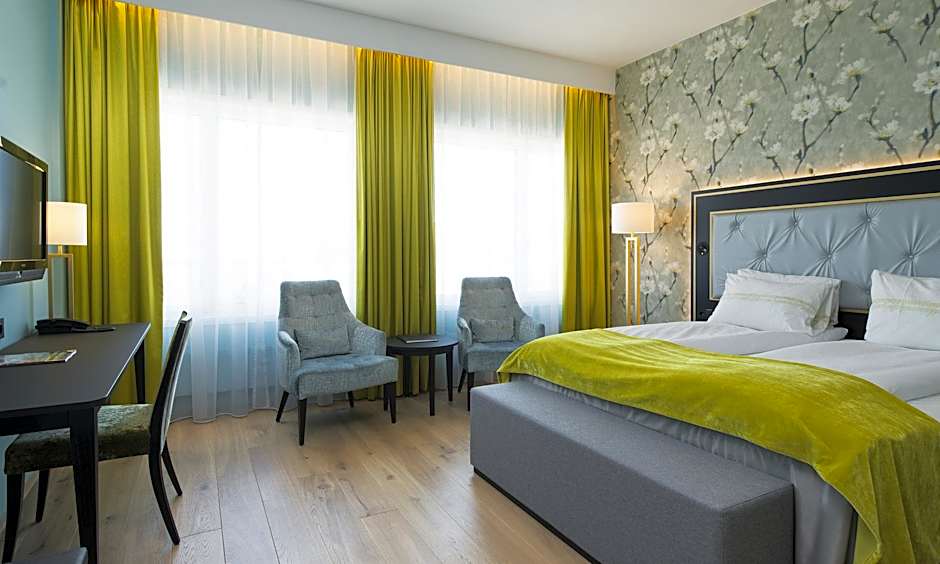 Spacious room with a seating area, flat-screen TV, mini-bar and in-room safe.